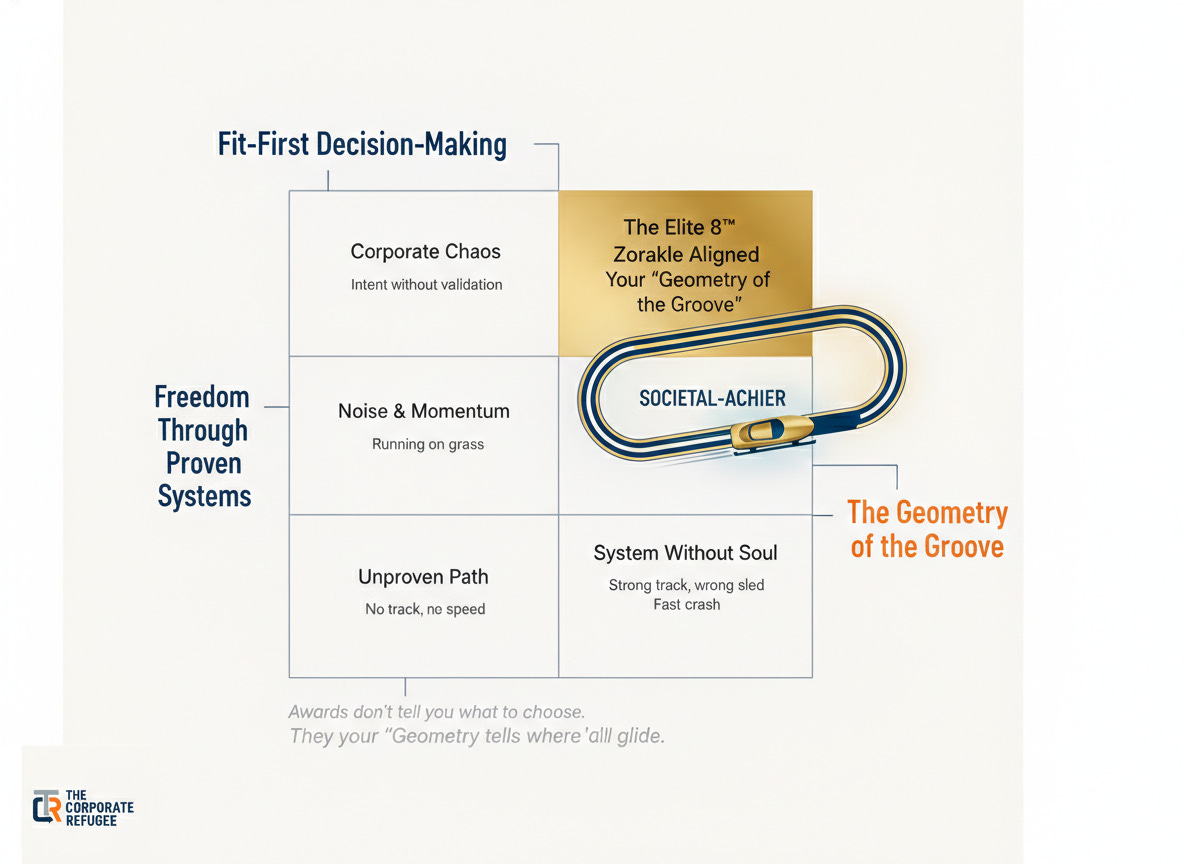 Freedom is not found in the absence of walls. Freedom is found when you find the “Groove” that was built for your specific archetype—the one that allows you to stop steering for survival and start steering for the podium.